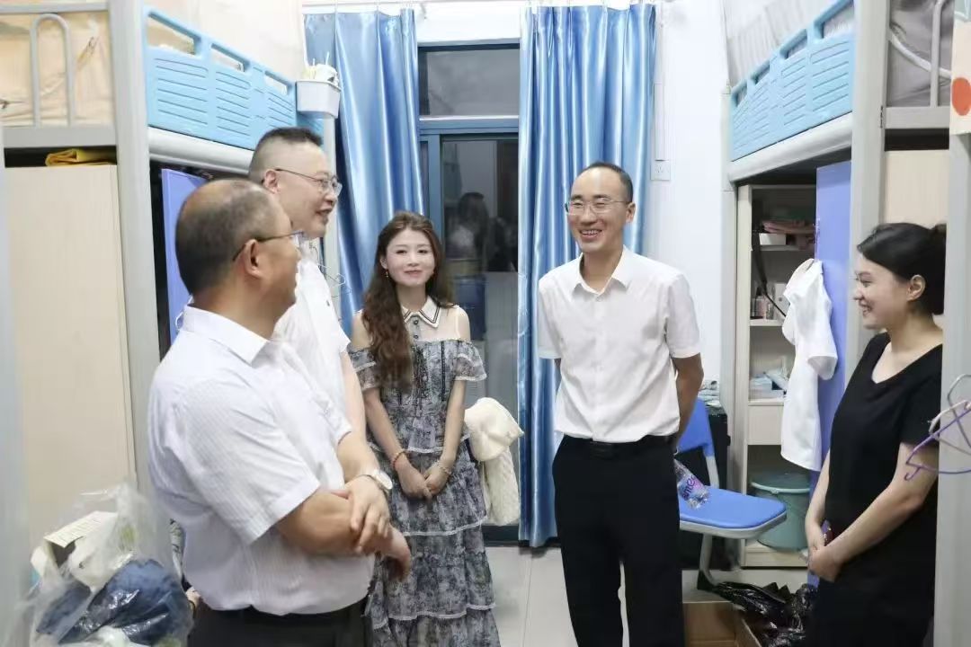 2025年6月24日20时,我院党委书记李晓燕、党委副书记方敏、副院长田方林、2022级研究生学科班班主任徐琴、2022级研究生学术班班主任王超以及2021级辅导员桑子豪走访毕业生寝室,关心慰问即将迈入人生新阶段的学院学子。