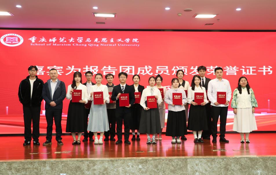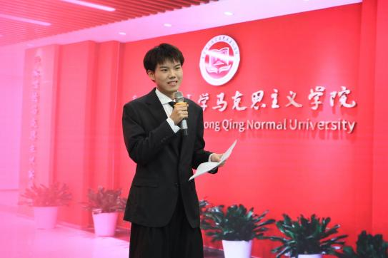 其中,袁茹分享自己在学生工作经历中主动担当作为,不断锤炼过硬本领,鼓励同学们做有理想、敢担当、能吃苦、肯奋斗的新时代青年。赵杰祥讲述自己在不幸的童年中积蓄力量、坚定理想信念,成长为学业、工作、实践协同发展的青年骨干。杨靖讲述了自己在重师马院的七年经历,他以“日拱一卒”的坚持跨越迷茫,以“知行合一”的实践书写属于自己的青春篇章。罗欣悦讲述了自己从“技能小白”成长为具备扎实师范生技能的学生骨干,鼓励同学们成长为有理想信念、有道德情操、有扎实学识、有仁爱之心的思政课教师。