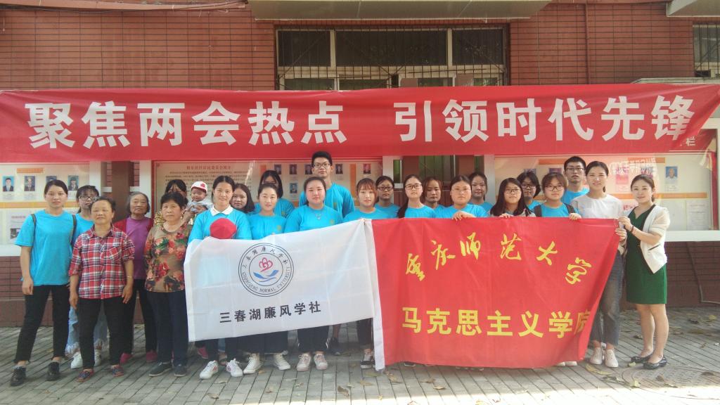 政治理论宣讲团,学院团总支·学生会实践部全体成员、理调部部分成员,学院第九期青马初级班学员代表,学院“星火燎原”志愿者分队部分成员,以及学院辩论协会、“中特”协会、三春湖廉风学社、社会与调查研究协会、法律协会部分成员。