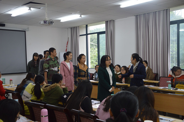 讲述中,她不乏为同学们穿插一些实例,她以马云为例,强调了人际交往中细节的重要性,她还为同学们播放了李帅的视频《当幸福来临》,从而来讲述坚持的必要性。