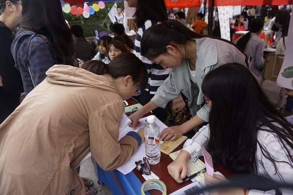 招新前期,协会全体成员齐心协力地参与到布置工作,为会员招新工作的顺利进行打下了一个坚实的基础。在招新的过程中,各部门在服从预先安排的工作任务下各司其职:或是宣传,或是解惑,或是负责登记……大家以积极、负责的态度为协会招纳了更多的贤才,最终以招纳155名会员的优异成绩圆满收官。