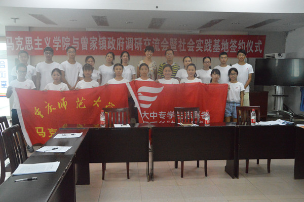 暑期“三下乡”社会实践团的成员在带队老师马小又的带领下,于8月24日在曾家镇人民政府成功举办调研交流会暨社会实践基地签约仪式。曾家镇人民政府统战委员郑洪强、团委副书记刘小静莅临本次会议。