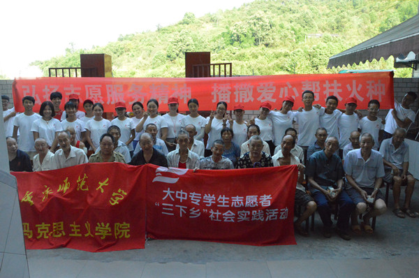 2016年暑期“三下乡”社会实践团来到曾家镇虎峰山村慰问老一辈社会主义建设者。