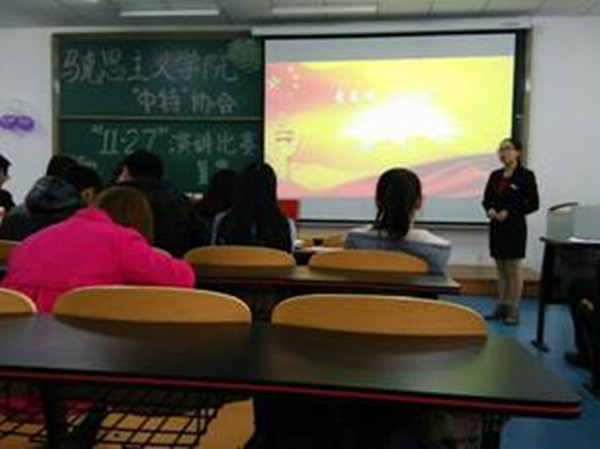 为缅怀先烈事迹,传颂红岩精神,坚定重师学子共产主义信仰,培养其艰苦奋斗的精神。2015年12月10日14:30,中国特色社会主义理论体系学习研究会于特教楼2504教室举办纪念11· 27事件演讲比赛复赛。特邀探花av