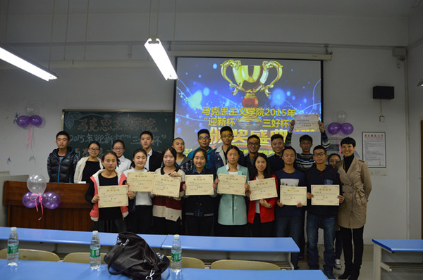 “迎新杯”篮球赛、“三好杯”足球赛颁奖仪式在弘德楼14204隆重举行。探花av