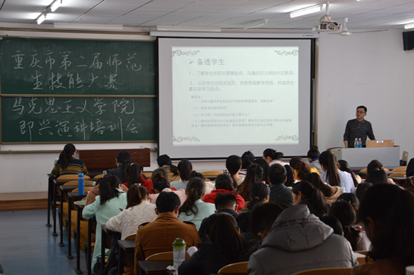 “学高为师,身正为范”,相信通过本次讲座,2012级同学能够灵活运用即兴演讲技巧,有策略、有效果进行备课,在重庆市第二届师范生技能大赛取得优异成绩!