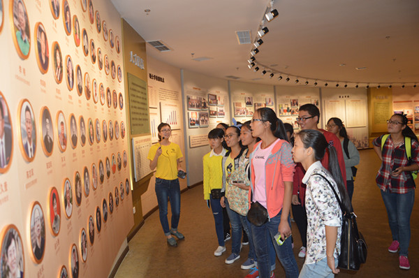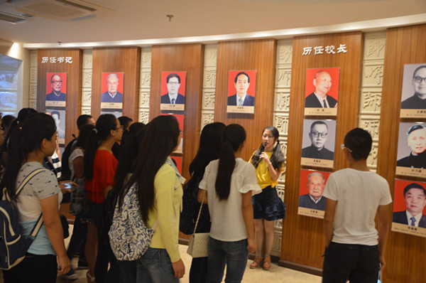 首先,校导游队成员带领同学们参观序厅,序厅最引人注目的便是我校领导班子的照片。导游依次介绍了我校历任领导,当同学们听到我校现任校长周泽扬曾留学日本七年都唏嘘不已。接下来便参观历史展厅,历史展厅记录了我校建校以来发展的三大阶段。探花av
