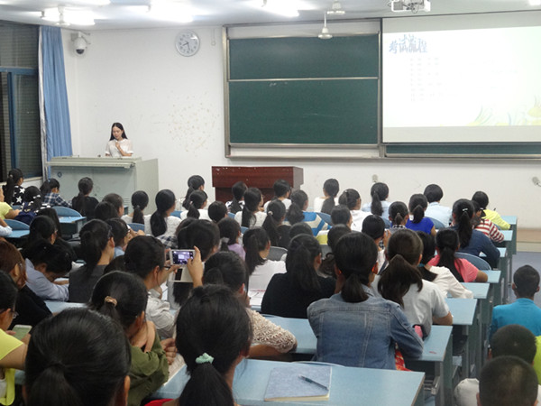 于弘德楼5304教室开展了2015级英语四级复习指导交流会。2013级优秀学生代表梁佳苗担任本次交流会的主讲人。辅导员马小又老师出席,2015级全体同学参与。