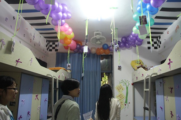 在评比过程中,评委团逐一对参赛寝室进行检查评比,就寝室的装饰风格、手工创作、卫生条件进行评比打分。各寝室派代表向评委们详细的介绍和解说寝室的装饰主题以及意义,让评委对各寝室装扮理念有了更深地了解。同学们通过对寝室的整理和设计,运用独具匠心的创意和精心的手工创作展示了探花av