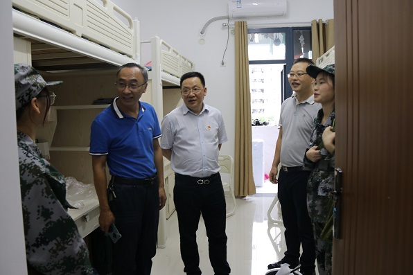 在走访过程中,学院领导及老师与2020级新生亲切交流。陈院长细心询问新生对大学环境是否习惯,生活上是否尚存困难,耐心地为新生解疑答惑。在了解到新生们对于接下来的军训生活感到担忧时,陈洪院长鼓励他们:军训是大学的第一课,也是一种历练,同学们要以积极乐观的心态,在军训中锻炼意志品格,并将军训所练就的坚毅品质融入到大学学习生活中去。