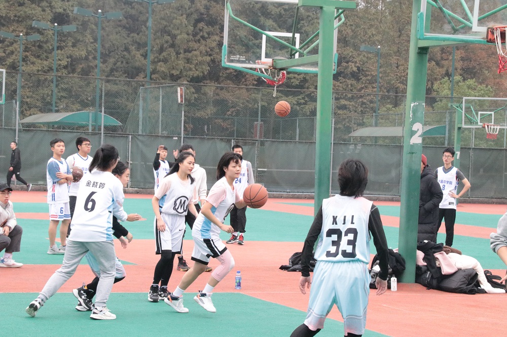 与外国语学院。各年级篮球爱好者到场观看,为运动员加油助威。