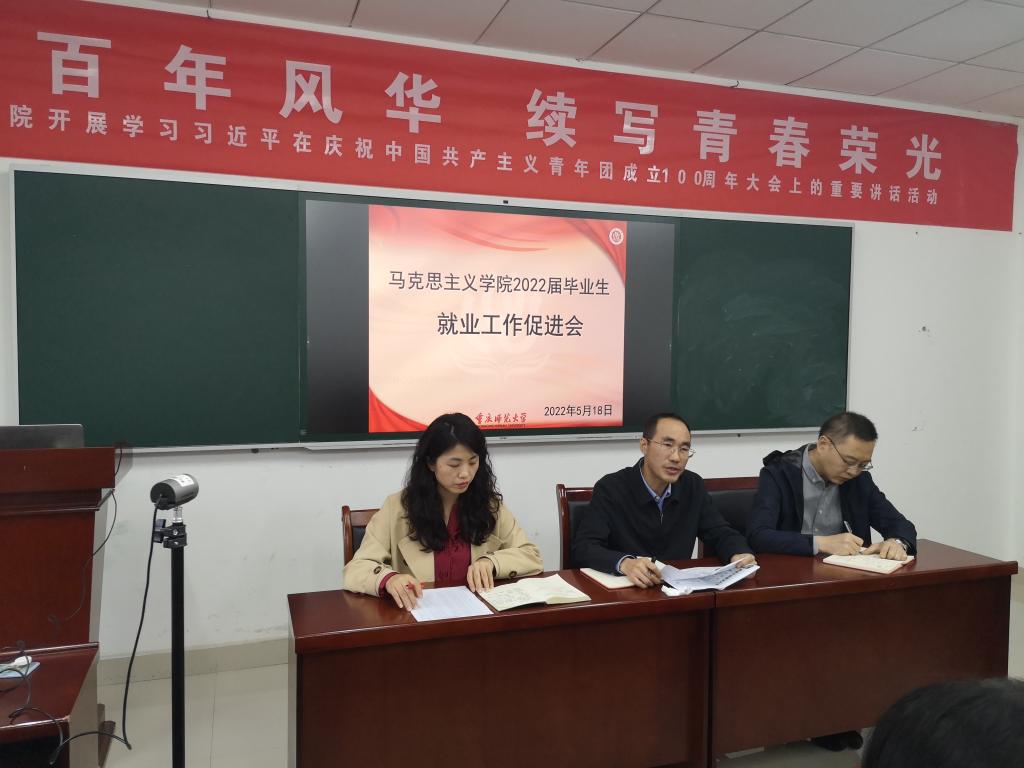 会议伊始,刘洪老师就2022届毕业生就业情况进行通报。随后,李书记从就业形势、学院就业支持力度等方面与同学们进行了分享交流。李书记依据重庆市各高校毕业年级考取率以及企事业单位用人需求现状等数据向同学们分析了当前严峻的就业形势,表示当前国家、地方、学校以及学院都在多渠道开发就业岗位、拓宽就业资源,他着重强调了西部计划对于同学们的帮助,希望同学们能够抓住机遇、实现个人成长。在就业行动方面李书记希望同学们能够转变思维,从自身实际出发选择就业岗位,面对就业过程中的打击,要及时调整心态,积极行动。方书记就同学们在就业过程中存在的观念问题、心态问题以及行动问题提出建议:一是要转变就业观念,正确认识当前就业形势,正视专项计划与私立学校教师岗位;二是乐观看待就业过程中的挫折,要迎难而上,乐观就业;三是要积极采取行动,增强自身师范生综合素质,及时寻求帮助,充分利用资源。最后,刘洪老师再次给同学们详细介绍了西部计划,希望同学们尽量抓住西部计划的良好机遇,到祖国需要的地方去,实现个人职业价值。