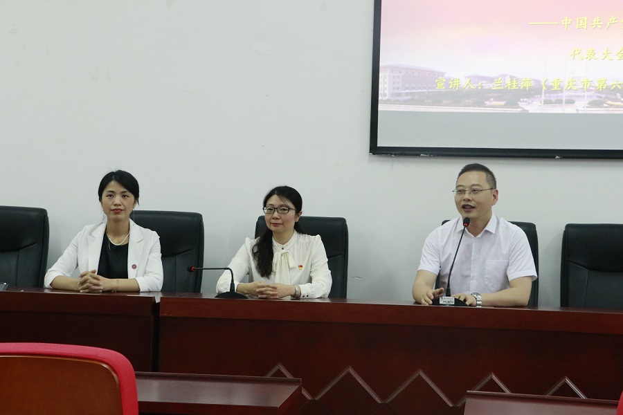 首先,兰桂萍老师对学校、学院、党支部表示由衷感谢。兰老师说到,作为一位思政教师代表参加本次党代会,得益于重庆市对于思政课教师的重视以及学校、学院的大力支持。