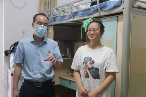 在学生寝室,学院领导、老师们与在校生亲切交流日常生活是否适应,学习状况是否顺利等,遇到困难及时联系学院,学院一定全力帮助同学们解决问题。同时,领导老师们嘱咐同学们,疫情无情人有情,中秋佳节宜和家人联系,共叙中秋思念之情。同学们倍感温暖,纷纷表示感谢学院的关怀与帮助。