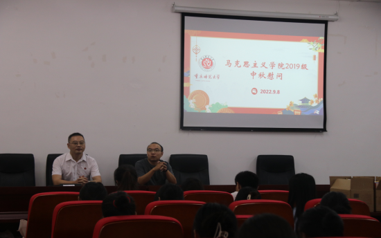鼓励师生留校共度中秋佳节。为此,学院聚集多部门力量,为在校生送去温暖满满的节日礼物与祝福。院党委书记李晓燕、副院长姜土生、党委副书记方敏、副院长侯玲、分团委书记刘洪以及班主任陈沉、成力杰共同代表学院慰问在校学生。