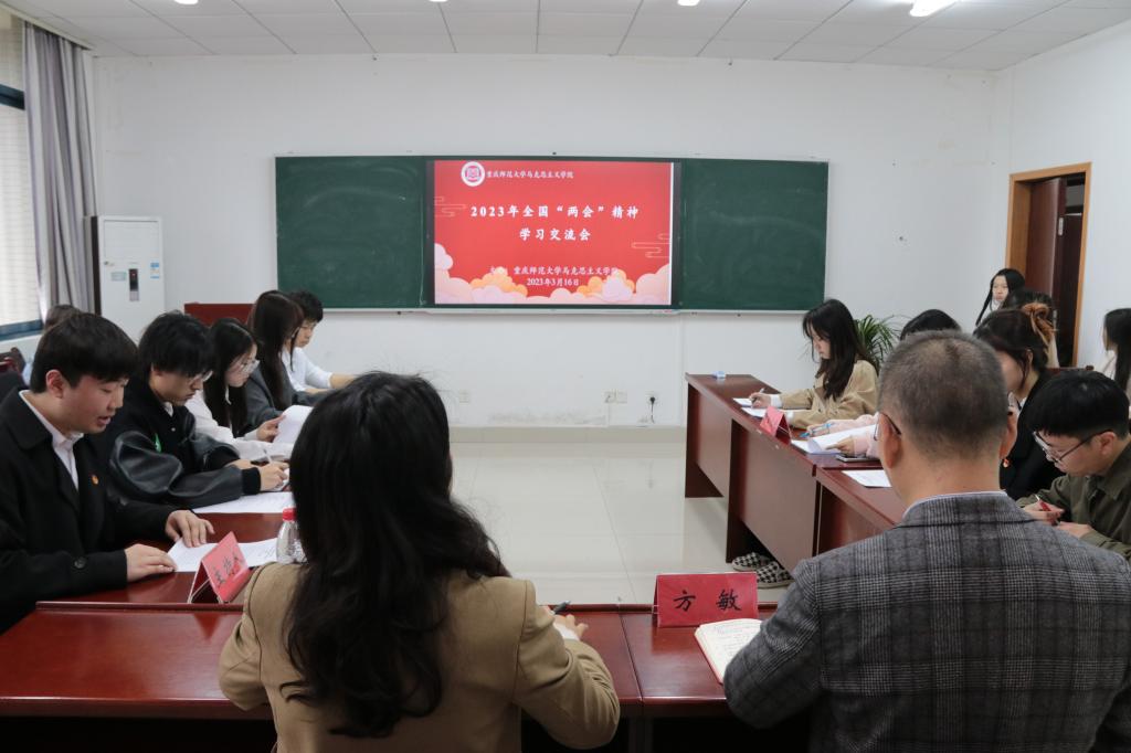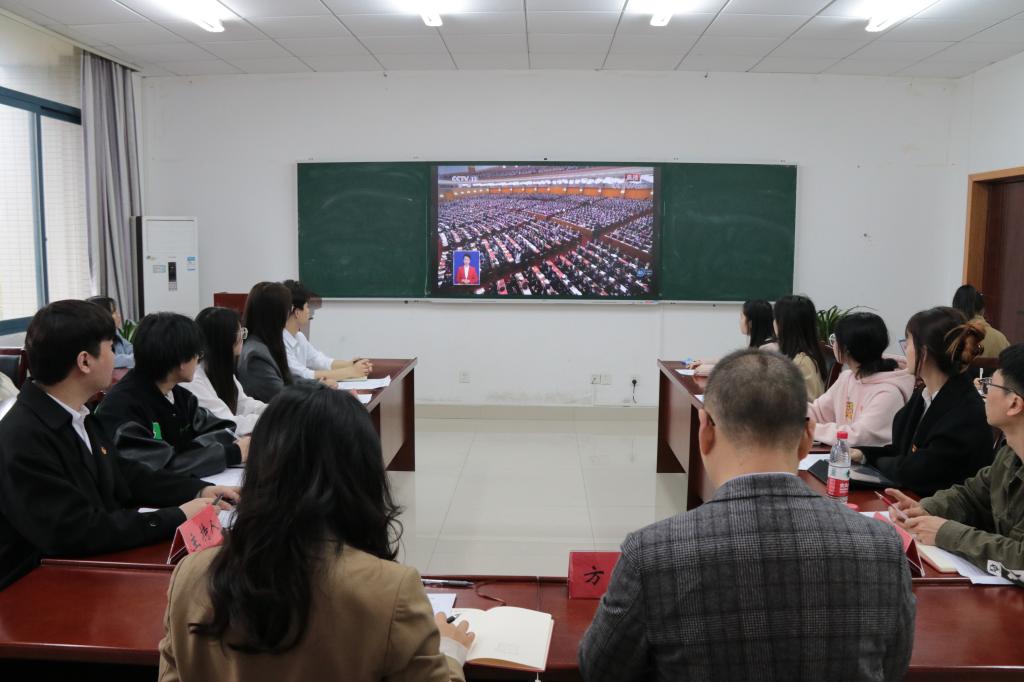 学子深入学习2023年全国两会内容,深刻理解2023年全国两会举旗定向、谋篇布局、凝心聚力的重大意义,2023年3月16日16时30分,学院于汇贤楼309教室召开2023全国两会精神学习交流会。学院党委副书记方敏、分团委书记刘洪、2021级本科生辅导员桑子豪出席本次座谈会,学生干部代表、各年级学生代表、协会代表到场认真学习。