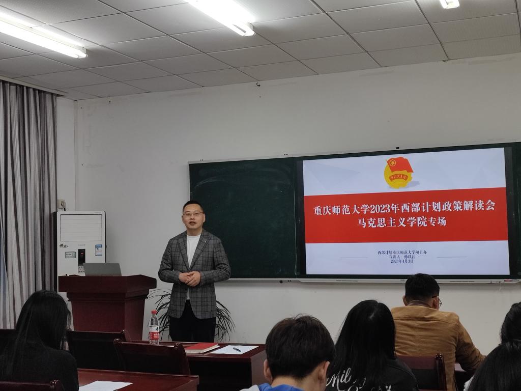 孙玖江老师围绕西部计划项目概况、服务地区、服务内容、招募流程四个部分,着重介绍了西部计划项目基本情况、报名条件及流程、选拔标准、基本政策保障、志愿者服务管理等内容,并针对西部计划的报名工作、岗位分配、服务期满后的优惠政策等相关问题进行了详细解读。最后,孙玖江老师针对同学们的疑惑对西部计划的政策进行了再次解读,宣讲会起到了良好反响。孙老师鼓励大家明确目标、提高站位,审慎思考、大胆前进,并祝愿同学们找到理想的工作。