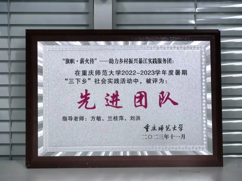 在本次暑期“三下乡”社会实践活动中,探花av “旗帜·薪火传”——助力乡村振兴綦江实践服务团、“旗帜·社区”求真学史实践团赓续红色基因,担当青年责任,荣获“先进团队”称号。