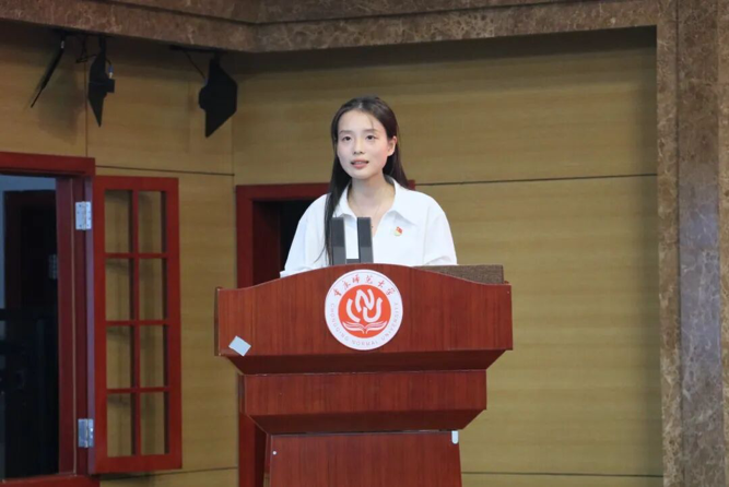 2026届研究生毕业生代表杨靖向学院表达感谢,学院始终以“用心、用情、用爱”关怀学子成长,并表示自己未来将结合个人理想追求与市场需求,理性分析自身能力与岗位适配度,实现科学就业。