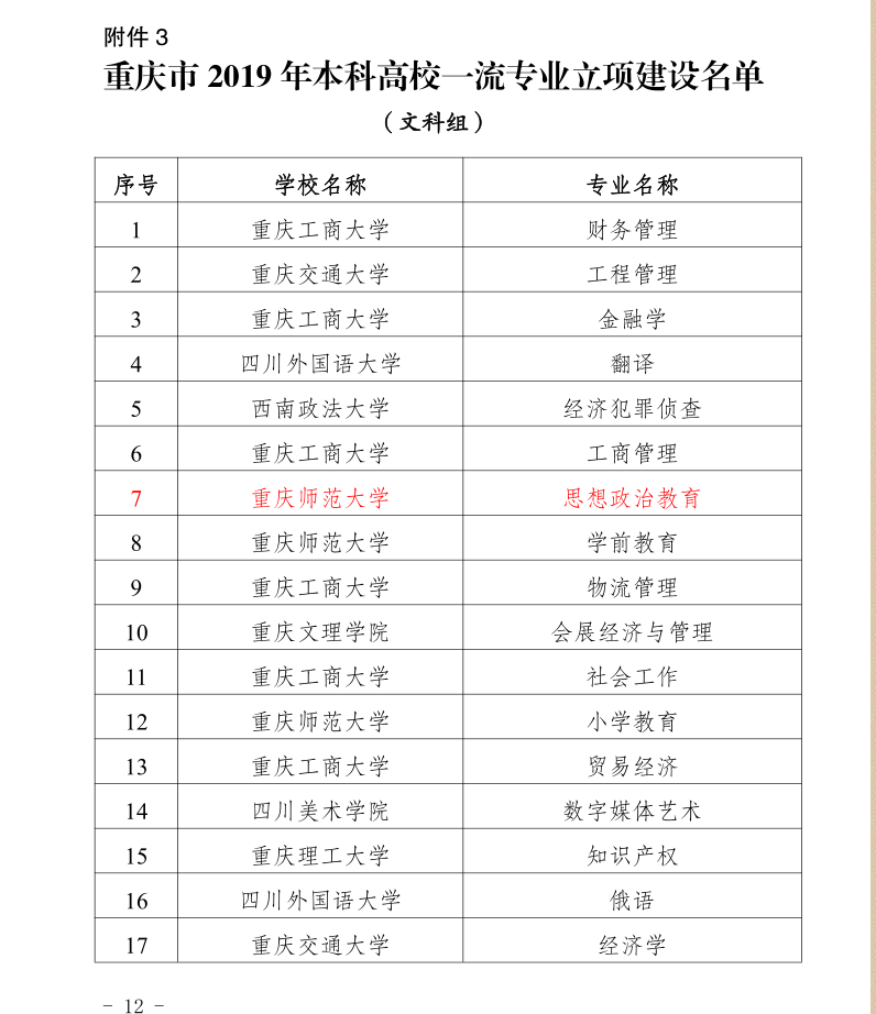 渝教高发〔2019〕7号 公布本科高校一流专业立项建设项目名单.pdf