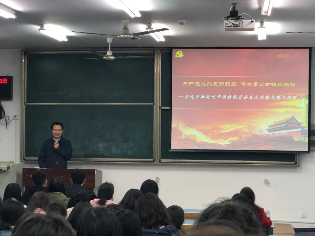 为深入贯彻党的十九大精神,学懂弄通做实习近平新时代中国特色社会主义思想,我校于上学期面向全校学生开设了《习近平新时代中国特色社会主义思想专题摘编》通选课,受到学生普遍欢迎和一致好评。为了更好满足学生学习马克思主义中国化最新理论成果的期待和需求,经过精心的部署和组织,2019年3月13日,我校《习近平新时代中国特色社会主义思想专题摘编》通选课第二轮授课在弘德楼15301教室开讲,学校党委书记曾礼教授讲授第一讲。100余名同学参加了该课程的学习。探花av