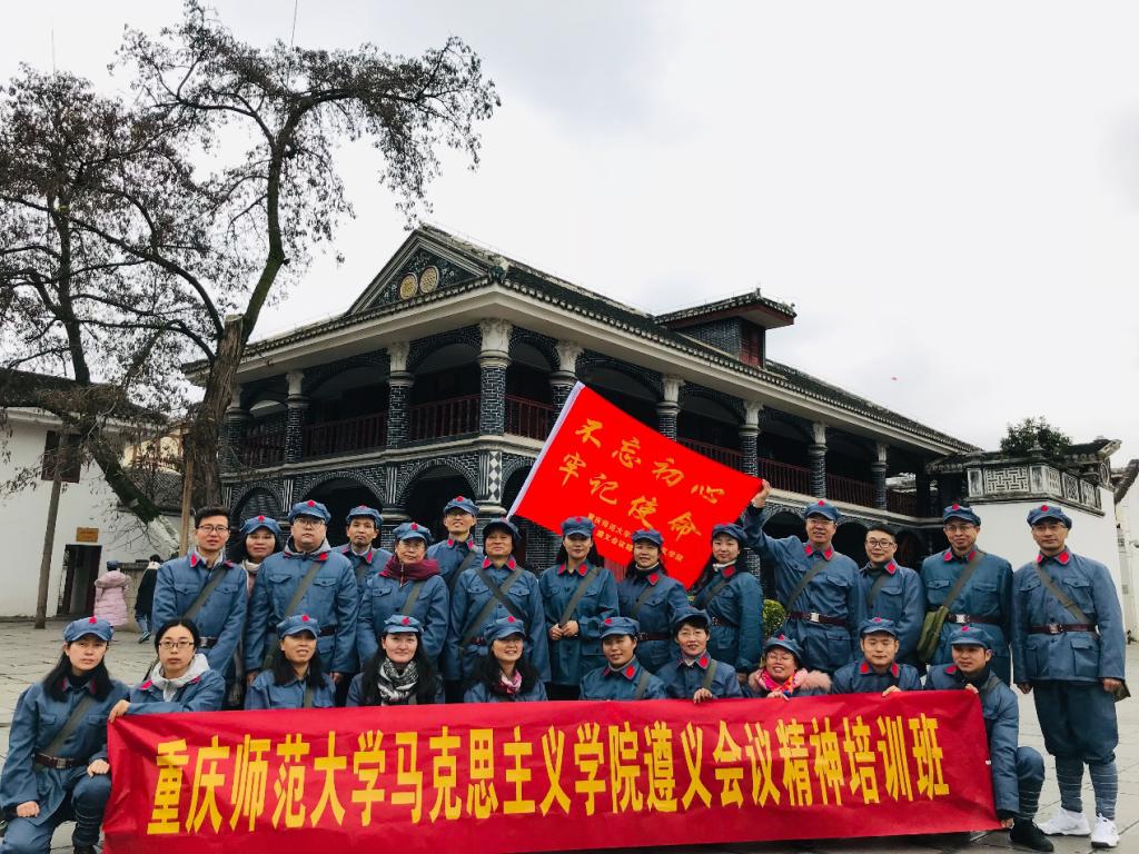 党委书记刘军副研究员、副院长况明安副教授、办公室主任廖文梅,思想政治理论课教研部主任兼中国近现代史纲要教研室主任孔庆茵博士、思想政治理论课教研部副主任兼思想道德修养与法律基础教研室主任魏冰娥博士、马克思主义基本原理教研室主任李长泰博士教授、毛泽东思想和中国特色社会主义理论体系概论教研室主任邵二辉博士一行30人到遵义师范学院进行工作交流,参加遵义会议精神培训。