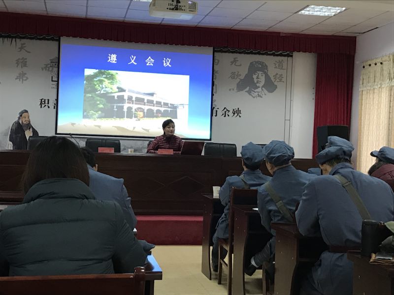 随后,老师们参加了遵义会议精神培训。开班仪式上,杨利馆长作了《遵义会议与遵义会议精神》的讲座。杨馆长从遵义会议的历史背景、遵义会议前后三次会议和遵义会议精神三个方面进行了讲解。整个讲解过程史料结合,详略得当,现场感强,深得大家的喜爱,并带领大家参观了目前不对外开放的一些场馆。接下来老师们参观了遵义会议会址陈列馆、红军山革命烈士纪念碑和娄山关战地遗址、长空桥和娄山关陈列馆。