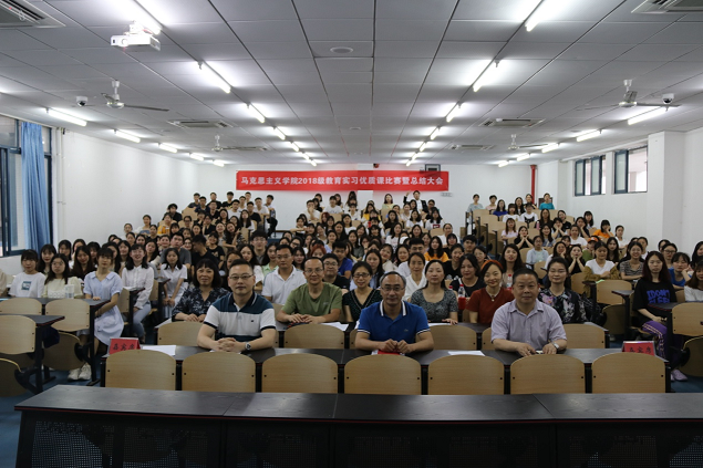 于砺志楼2402教室召开2018级思想政治教育实习总结汇报大会。学院党委书记刘军、党委副书记方敏、副院长况明安、政教系主任祝玉峰、政教系副主任郑瑜、教科办主任张晓庆及全体实习指导老师和2018级辅导员出席本次大会,2018级全体实习生参加。