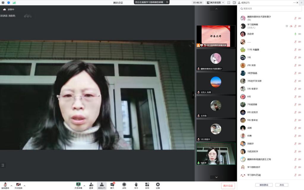 紧接着,刘忠荣老师从“选好经典、吃透经典、用好经典”三个方面提出建议:一是主题的选择,所选经典篇目要适合当今时代发展潮流,所选材料要紧扣主题,做到不偏题、不跑题;二是读懂读透经典,尊重经典原文意思,不做过度解读甚至改变原意,避免出现背景过大、感想空泛、引用不当等问题;三是理论实际相结合,将经典运用至生活实际中,通过阅读经典提高自身思想觉悟,促进自身能力发展。